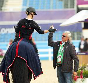 Hoch motiviert -- und hoch zufrieden -- so lässt sich der heutige Trainingstag zusammenfassen, an dem die Dressurstars die Gelegenheit hatten, nach dem gestrigen Vetcheck noch einmal im Stadion zu trainieren, bevor es morgen endgültig ernst wird. Zum Schluss gab's den fast schon traditionellen Handschlag zwischen Vici und Wolfram. Morgen wird noch einmal in der überdachten Trainingsarena trainiert, bevor Vici und Augustin dann am Freitag gegen Ende der Prüfung ihren ersten gemeinsamen Olympia-Auftritt absolvieren.